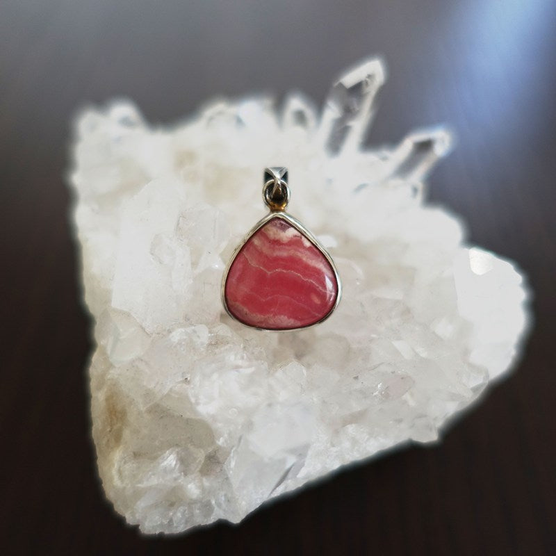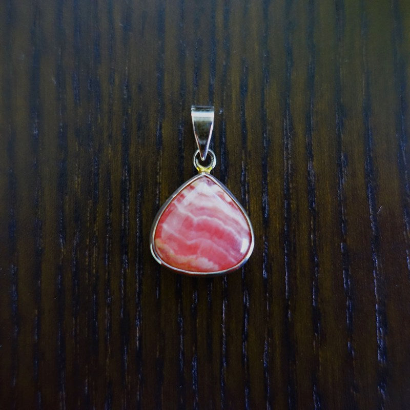 ピンクにうっすらと白い縞模様が入っているインカローズのペンダントトップです。インカローズは深い愛を象徴するストーン。豊かな愛を育むので恋愛成就はもちろん、包容力や母性を高め、女性の美しさと温かさを引き出してくれます。心に受けた傷や心身の疲労を癒す力にも優れています。心寂しい時には心を落ち着かせてくれるでしょう。愛のエネルギーの必要な役割やお仕事の方の“愛情の補給”にも大変お奨めです。子育てや介護、医療従事者、教育者のサポートにも。