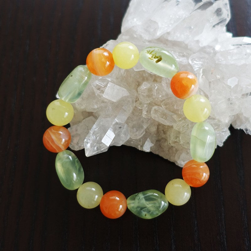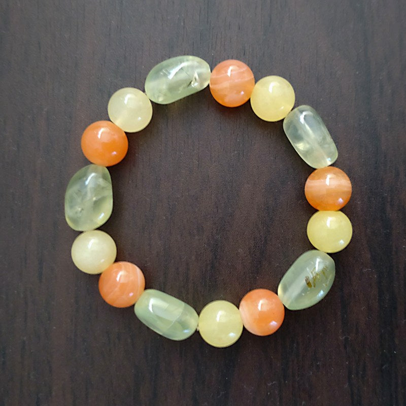 オレンジカーネリアン&イエローカルセドニー&プレナイト ブレスレット《174mm/リラックス/明るい気持ち》【ポスト投函対応可能商品】