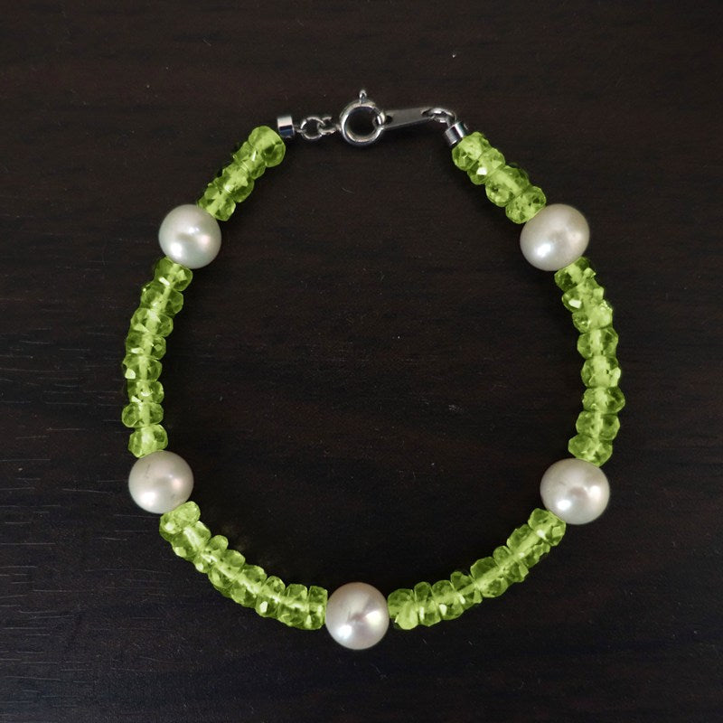 【送料無料】ペリドット&淡水パール ブレスレット《180mm/金具付き/明るい心・出会い運》【ポスト投函対応可能商品】
