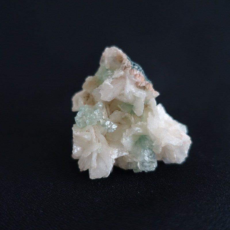 ゼオライトグループ(沸石グループ)に属する「アポフィライト」「スティルバイト」「ヒューランダイト」が共生した鉱物です。ゼオライトグループに属する鉱物は「高い浄化力」「癒し力」「リラックス」「ストレス緩和」などの働きがあり、とりわけマイナスエネルギーや毒素を浄化するパワーが高いのが特徴。