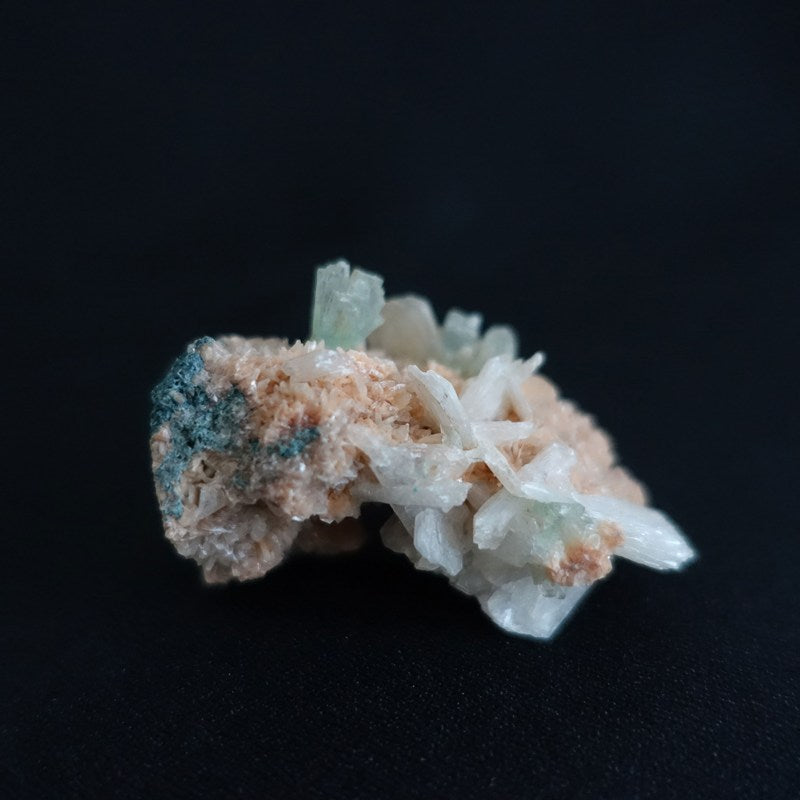 ゼオライトグループ(沸石グループ)に属する「アポフィライト」「スティルバイト」「ヒューランダイト」が共生した鉱物です。ゼオライトグループに属する鉱物は「高い浄化力」「癒し力」「リラックス」「ストレス緩和」などの働きがあり、とりわけマイナスエネルギーや毒素を浄化するパワーが高いのが特徴。