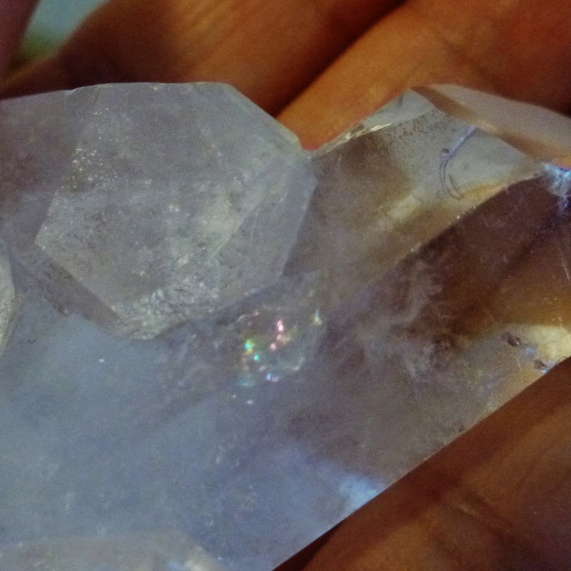 天然のクラックにより七色の虹が現れる水晶。ポジティブなエネルギーを放ち、ネガティブな感情を癒し、至福の喜びや幸せを呼び込んでくれるといわれている。また、ハートに光を呼び込む力が高く、愛情が足りないと感じる時や愛を深めたい時には特にお勧めです。心身が消耗している時にエネルギーを回復する力が高く、パワーアップをはかってくれる。