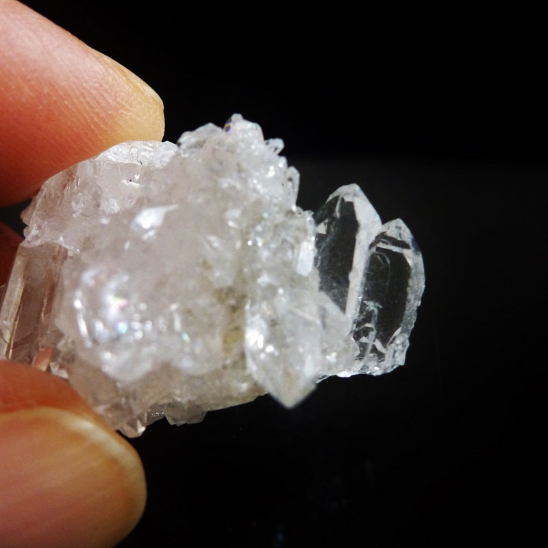 ミニサイズの小さな水晶クラスターです。小さなポイントがたくさん付いていてキラキラと輝きます。小さなタントリックツイン(指で持っている写真参照)が、けな気で愛おしく感じます。タントリックツイン水晶は、恋人、親子、友人、親友、同僚など、二人の人間の関係性に融和と調和をもたらし、深い絆を与えるとされています。持ち運びもできるサイズですし、ブレスレットの中心にクラスターを置けば、ブレスレットの浄化にも働いてくれるでしょう。トイレや洗面所などの水周りやドレッサーなど、小さな場所のお浄めにも適しています。