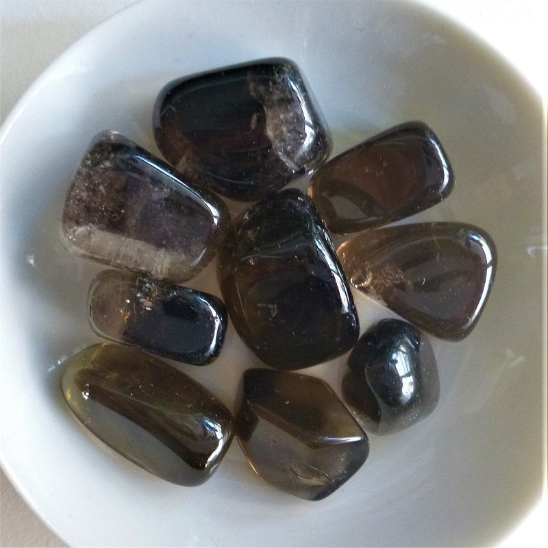 水晶の一種で透明な茶色をしており、和名では煙水晶と呼ばれる。不安感、恐怖心、焦燥感などのネガティブな感情から心を開放する。グラウンディングを促し、イライラを鎮め、安心感とリラックスを与える。集中力が高まることで、直観力や潜在能力を引き出してくれる。焦りがちで失敗の多い方やアガリ症の方の神経を鎮め、神経を安定させ、落ちついて行動できるように促す。おっかなびっくりになっている時にもお奨め。不眠や邪気除け、脚の不調にも効果的。